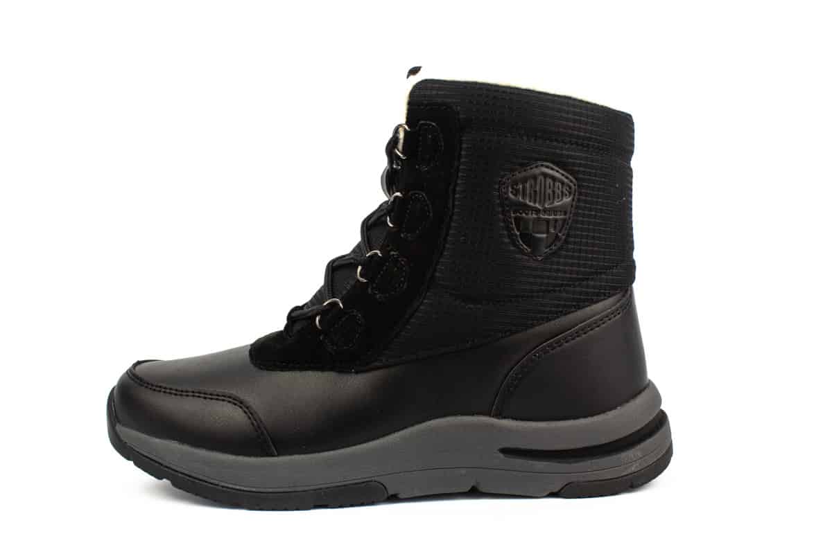 Женские ботинки Strobbs в классическом черном цвете для активного отдыха и ежедневного городского ношения. Износостойкие и качественные материалы не требуют частого ухода. Верх выполнен из искусственной кожи и текстильных вставок. Современный внешний вид приятно дополнит образ и придаст уверенности. Внутренний утеплитель из искусственной шерсти сохранит ноги в тепле в суровые зимние морозы. Материалы обладают хорошей воздухопроницаемостью, сохраняя ноги сухими в течение всего времени. Ботинки хорошо прострочены и устойчивы к разрывам. Термопластичная резина, из которой изготовлена подошва, имеет протектор и обеспечит хорошее сцепление на обледенелых дорогах. Она не теряет свойств на морозе оставаясь мягкой и гибкой. Мягкий язычок и высокий голеностоп ботинка, обеспечивают плотное прилегание защищая от травм и вывихов. Отверстия для шнурков с металлическими клепками устойчивы к разрывам. Шнуровка надежно фиксирует кроссовки на ноге. Практичная и легкая обувь станет Вашим любимым вариантом на зимние время года.Особенности и преимущества: