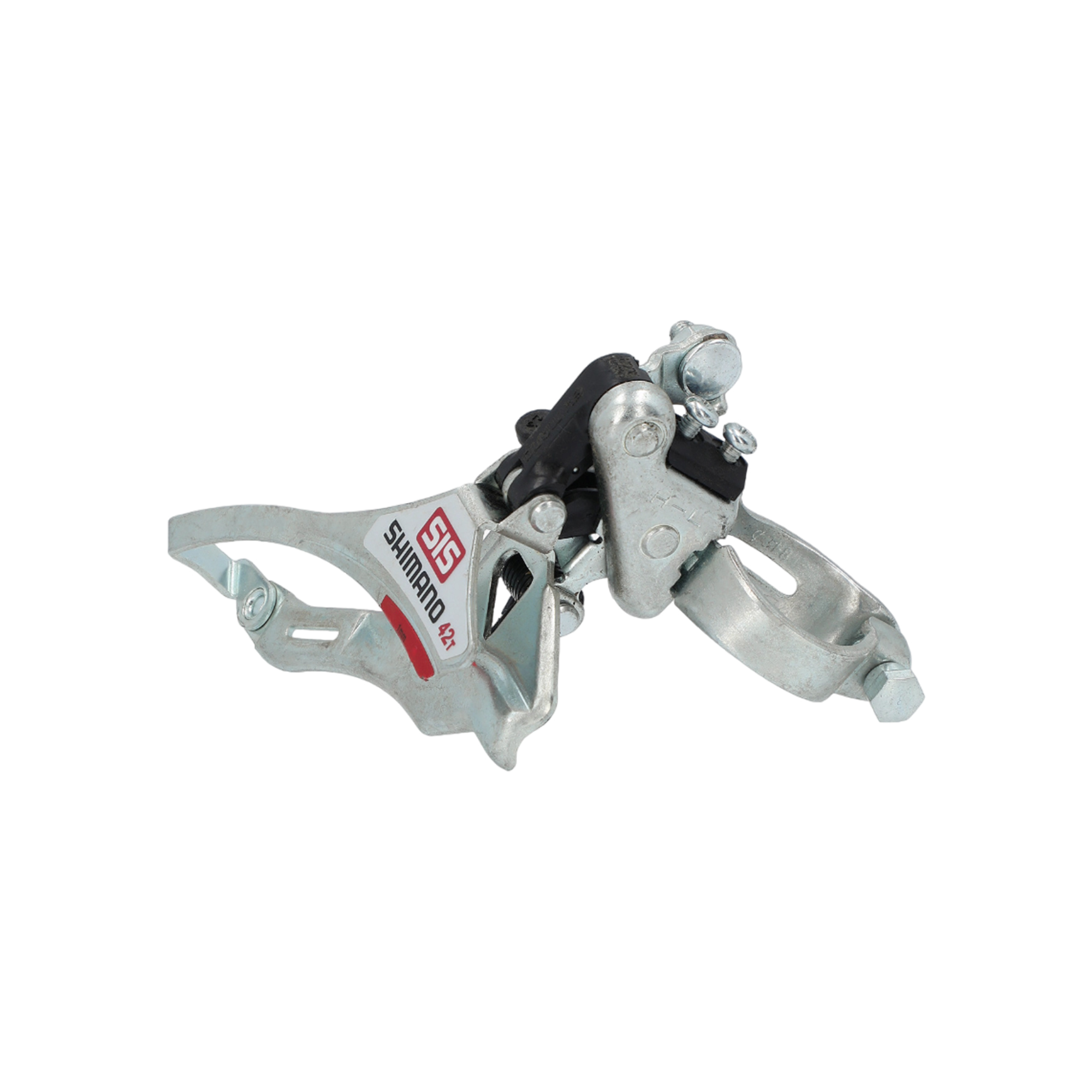 Передний переключатель Shimano Tourney FD-TY10. Нижняя тяга, максимальное количество зубьев на звезде 42T. Хомут 31.8 мм. На перья 66–69°.Особенности и характеристики:
